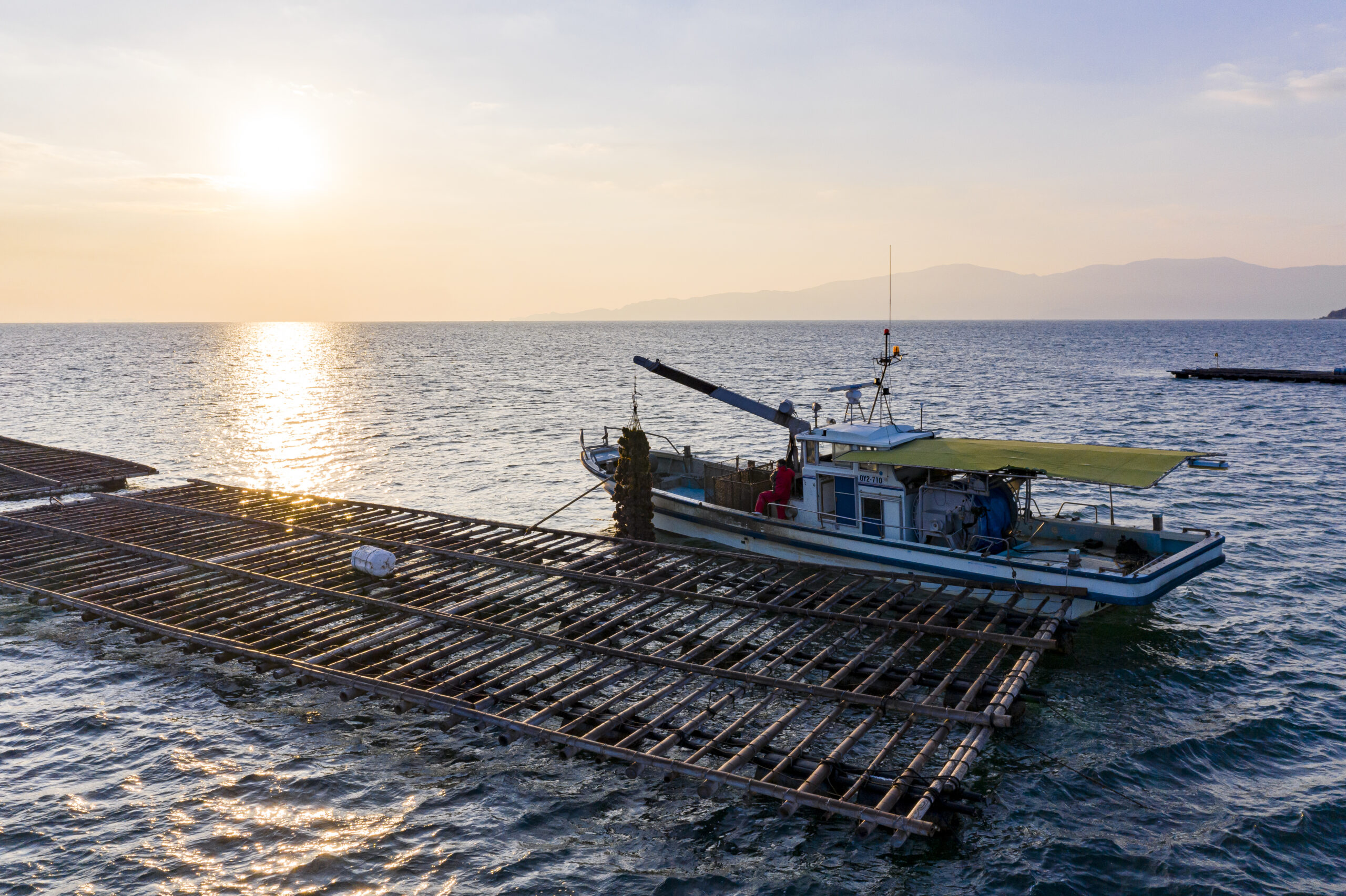 干満差が大きく潮通しの良いこの海域は、水揚げした牡蠣をそのまま生食可能な清浄な海域です。